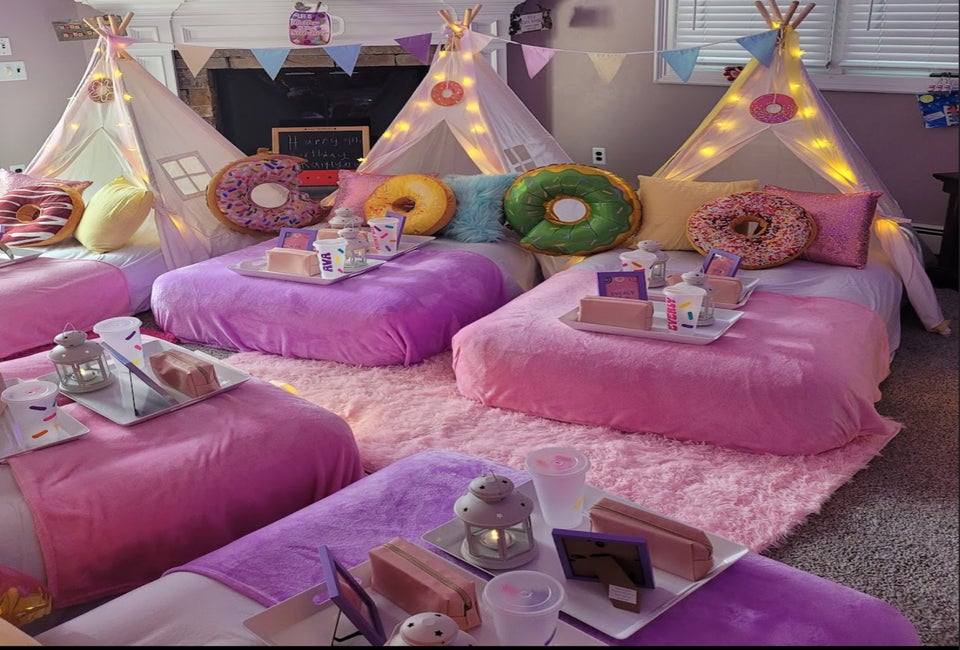 Each event is designed with attention to detail, featuring coordinated blankets, twinkle lights, decorative pillows, trays, custom signage, and each setup includes a personalized favor for each party guest to keep! Optional add-ons like spa stations, paint parties and charm bracelet bars enhance the experience, offering families a stress-free way to create magical memories at home. With a reputation for professionalism, thoughtful styling, and kid-approved fun, The Cozy Camp-In has quickly become a go-to for families seeking unique, elevated celebrations.