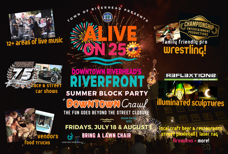 Riverhead’s summer block party takes over Main Street and beyond with live music, craft beverages, local food, art, family fun, and a new downtown crawl to enjoy more beyond the street closure during the event and after hours.