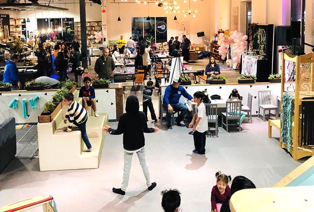 At Social Play Haus, grab a cold-brewed beer or hot brewed coffee and settle in for some cozy fun. The 5,000 sq. ft. arena is made up of mostly communal gathering space, all located in a mid-century industrial setting. Owners Marc and Jenni Bacayon, parents of two little ones themselves, planned this perfectly appointed space and its well-thought-out amenities.