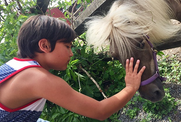 An early Saturday morning on the North Fork found my family turning to this equestrian oasis for an interactive and informative visit. Eloquent tween-aged volunteers led our farm tour. First, we made our way to the feeding barn, where our boys, ages 6 and 9, handled feed and learned about daily medication, dental care, and hoof maintenance. Bonus—we were able to handle some real horseshoes.