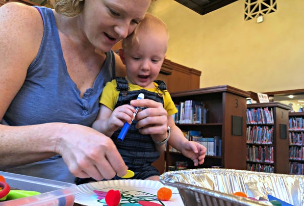 Playtime at Central Library's play kitchen. Photo by Lindsay Halladay