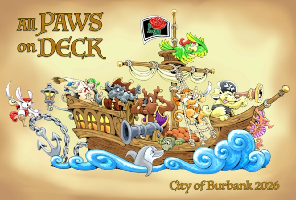 Anyone who'd like one last peek at Burbank's entry in this year's Rose Parade can catch the community float in its final public viewing across from the Burbank Central Library, at the corner of Glenoaks and Olive. This year's float is titled "All Paws on Deck!"