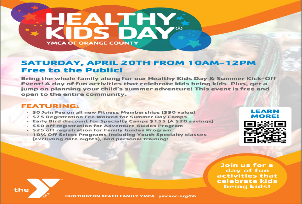 The whole family is invited for a day of fun activities at the Healthy Kids Day & Summer Kick-Off event at Huntington Beach Family YMCA.