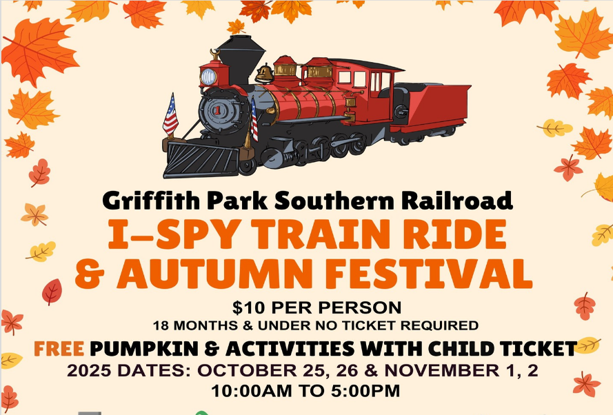 The Griffith Park Railroad is adding a bit of spice... pumpkin spice! Train rides on select dates travel around a family-friendly, seasonally decorated, mile-long track. Riders can play I Spy, spotting each hidden pumpkin and Halloween item on the map.