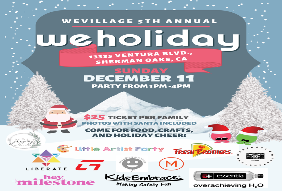 Families are invited to celebrate the holidays at the 5th Annual WeVillage Holiday Charity Event in Sherman Oaks. Guests can enjoy North Pole snacks for the family, photos with Santa, holiday crafts, and holiday cheer. Surprise celebrity guests are in attenddance to spread holiday magic.