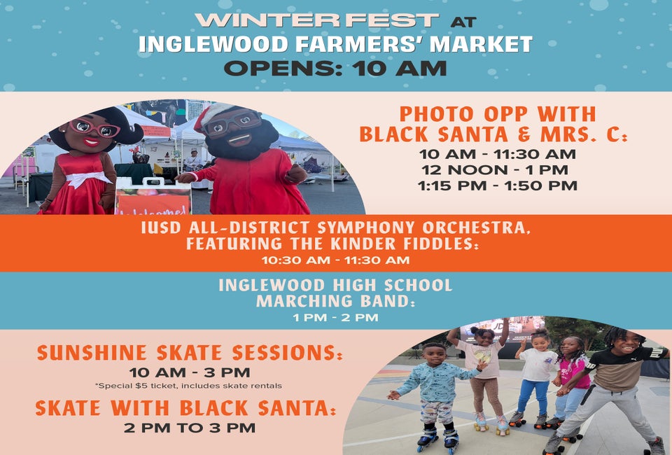 Families can celebrate the holiday season at Hollywood Park's annual WinterFest, where guests can visit with Black Santa and Mrs. C for photo ops.