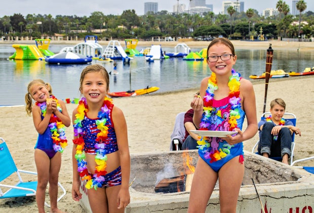 Apologies, but I am about to blow a well kept secret wide open: Newport Beach has a cove hidden in plain sight that may be the best family beach day in the Southland. Of course the definition of "best family beach day" may not be the same for everyone; only continue reading if your ideal beach day would include kayaks, SUP boards, paddle boats, and an inflatable water park in a warm surf-free lagoon surrounded by clean sand, fire rings for s'mores, easy parking, and clean bathrooms. Only head to Newport Dunes if you're prepared for that level of nirvana.