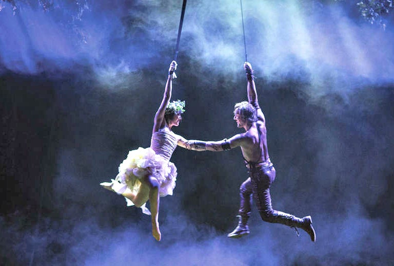There is, however, nothing preachy about this show. It is non-stop action, with physical feats one rarely sees on stage outside of Cirque du Soleil. The cast includes athletes and gymnasts whose impressive stunts create an exciting, irresistible world, and the original music swings right along with them, becoming part of the action in delightfully imaginative ways.