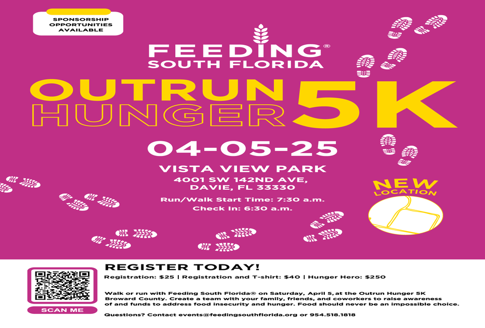 Feeding South Florida, the leading hunger-relief organization in South Florida, hosts its 14th Annual Outrun Hunger 5K. At an all-new location this year, runners, walkers, families and community leaders of all ages come together to take steps to raise funds and awareness to end hunger in South Florida at Vista View Park in Davie.