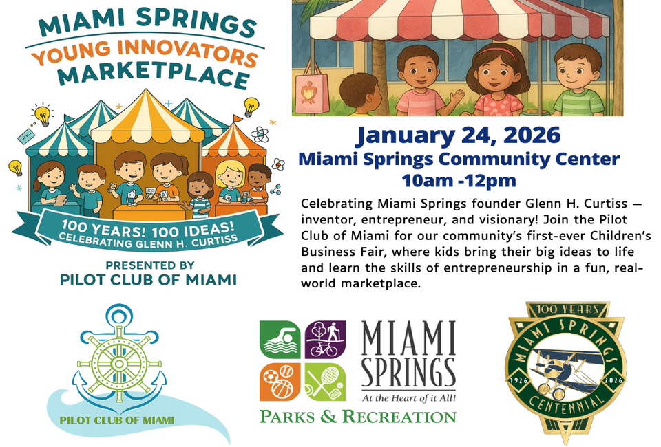 Join for the first-ever business fair for kids in our community, celebrating Glenn Curtiss, the visionary founder of Miami Springs, whose spirit of innovation continues to inspire young creators today.
