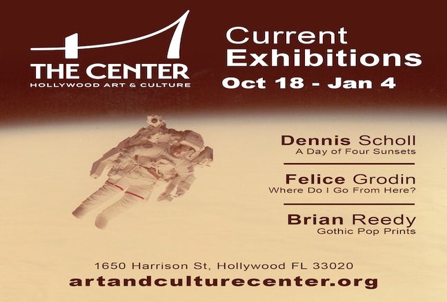 Hollywood Art and Culture Center, celebrating its 50th anniversary, will feature three new art exhibitions for the fall/winter season. Dennis Scholl: A Day of Four Sunsets and Felice Grodin: Where Do I Go From Here? will be on display from Saturday, October 18, through Sunday, January 4, and Brian Reedy: Gothic Pop Prints will be on display from October 18 through November 2 in the main gallery space.