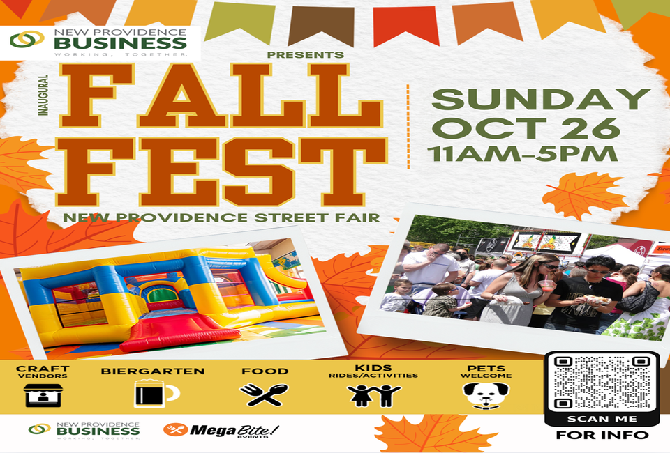 The new New Providence Fall Festival Street Fair is a day packed with festive fun, food, and fantastic finds, presented by New Providence Business. Experience over 100 amazing vendors, crafters and local businesses, plus two kid zones.