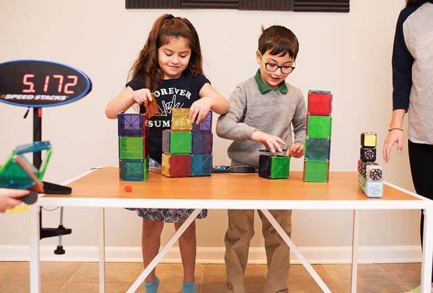 In addition to open play, classes, and camps, Genius Gems will host a variety of special events, including Sensory-Friendly Sundays, for kids with sensory sensitivities; Dad Build-A-Thons, to give dads a chance to shine (and to give moms a break); and a Holiday Train Show, featuring electric trains and thousands of magnetic tiles.
