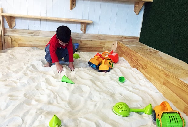 Woodland Indoor Playground is the brainchild of Marina Miller and Julija Stoliarova, self-described "serial entrepreneurs" who came up with the idea by envisioning the sort of play space they'd want for their own children and their friends. There's a lot of awesomeness packed into the 1,250-square-foot space, but the highlights are definitely the chicken coop, where plush chickens roost in nests filled with wooden eggs (which kids can collect in adorable wicker baskets); a playhouse with two slides; the farmer's market food truck, complete with shopping carts, groceries, a cash register, and serving window; and a 7.5 x 9–foot sensory box filled with therapeutic sand, where kids can jump in and dig and play with a variety of sifters, scoopers, and vehicles.