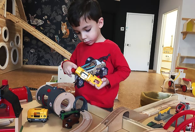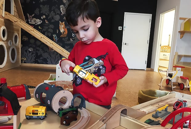 Woodland Indoor Playground, the brand-new play space in Cedar Grove, looks like my fantasy of a child's play room—the one I envisioned before I had kids, and plastic toys with blinking lights and annoying sounds took over my house. Quite unlike my living room, Woodland is a clean, modern, Scandanavian-inspired space stocked with beautiful wooden toys that promote imaginative, sensory play—including a farmer's market food truck, chicken coop, playhouse with slides, sensory sandbox, train table, building blocks, and lots more.