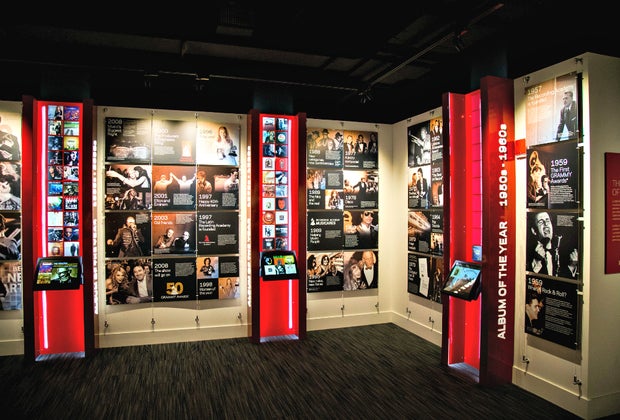 Costume exhibits highlight iconic wardrobe choices from past GRAMMY ceremonies: Remember Jennifer Lopez's bombshell green Versace gown? See it up close here. How about Kanye West's red-and-white marching band uniform from his 2006 performance of Gold Digger with Jamie Foxx? Or Coldplay frontman Chris Martin's colorful, military-style leather jacket?