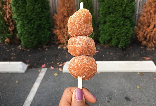 Montclair Bread Company's apple cider doughnut holes come speared on a skewer for easy eating. Photo by the author.