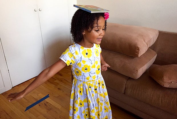Pick a challenge, like balancing a book on your head, to move from one part of the course to the next.