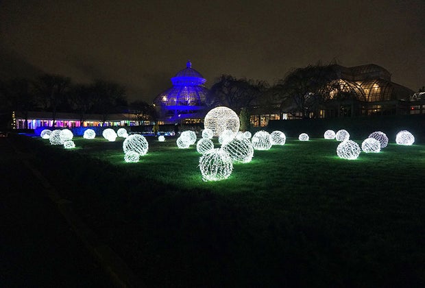 The New York Botanical Garden's Glow installation lights up the grounds on select evenings all holiday season long.