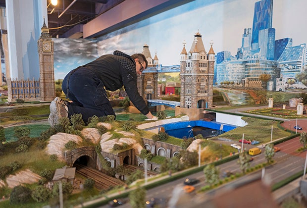 The exhibit includes a number of miniaturized European cities, including London, above.