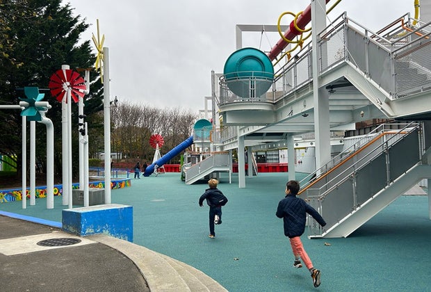 At 30,000 square feet, there is plenty of space to run, romp, and explore in the Science Playground at the New York Hall of Science. Photo by Diana Kim