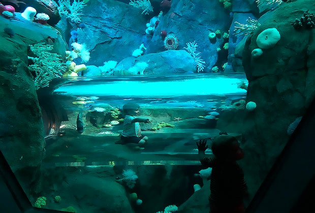 Crawl through a glass tunnel to feel like you're in the depths of the ocean, surrounded by marine life.