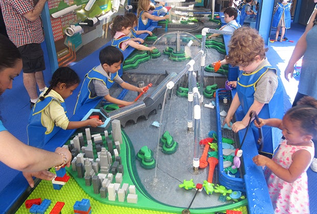 The space surrounding the water table is brightly illustrated with narrative descriptions of how water travels from upstate New York reservoirs to city skyscrapers, information that even will teach adults a thing or two. Older children can build their own aqueduct systems by manipulating magnetic pipes for an interconnected waterway that carries water 100 miles from the Catskills to NYC.