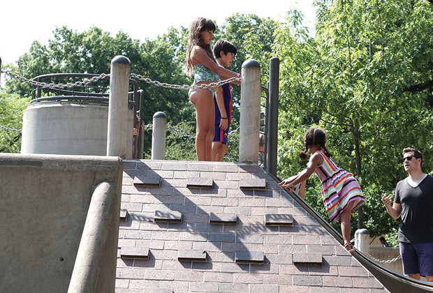 Located a stone's throw from the Hudson River, this newly renovated playground has earned the nickname Nature Playground. A tree house climbing structure is the centerpiece, but there's plenty of other fun nature-inspired elements, too, like ladybugs and leaves to jump on and a balance beam that looks like a log. My kids go ga-ga for the zip line.