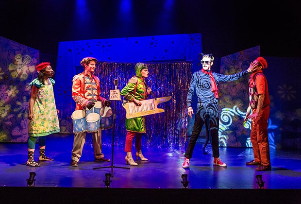 All the characters are played by adults, and if your kids are fans of the book and expect to see Pete looking like himself, they may be disappointed at first. The actor playing Pete wears jeans, a T-shirt, and Converse sneakers throughout the show—the only cat features he has are pointy black ears and a long tail. But that means no one is distracted by big bobblehead costumes.