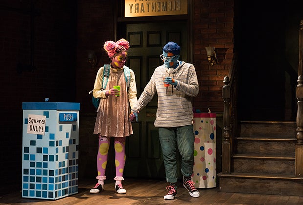The bright set, costumes, and hair/makeup (blue skin! purple skin! rainbow hair!), as well as the characters' electric personalities will draw kids in immediately, while the 55-minute performance takes a complicated topic and puts it through a kid-friendly lens—without dumbing it down or simplifying it too much.