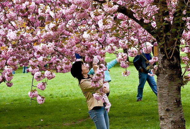 This six-acre formal garden, with its English, French, and Italian sections, is a great spot to find springtime blooms. Among the early buds are crabapple trees, tulips, clematis, and countless other varieties of meticulously pruned and maintained shrubs and perennials. Note: The Conservatory Garden is a designated quiet zone, best for leisurely strolls and mellow contemplation. Fortunately, Central Park’s 843 acres offer plenty of room for wild springtime romping, playground fun, and bloom spotting.