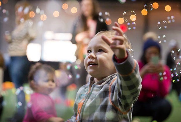 44. Play games and run around on the indoor soccer field at The Backyard at Berry Park (formerly the Pitch) during The Little People Party, a twice-weekly daytime playgroup.