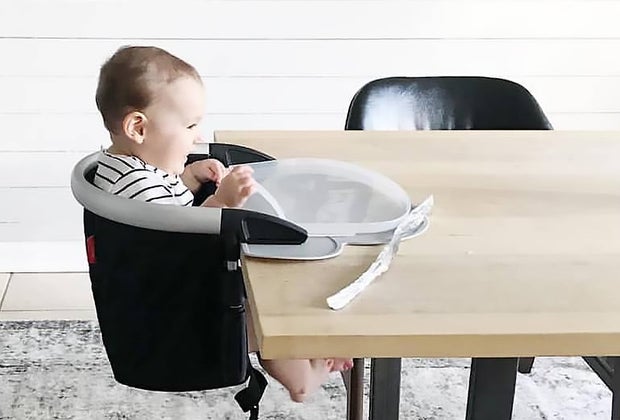 Who needs a big, bulky highchair when your baby can sit right at the table with you? There are seats that strap into one of your dining chairs. Or better yet, how about an even more compact and multi-functional baby seat that clips right onto the edge of the table? That way you can take it to restaurants, on vacation, or just to visit friends. (My pick: Phil & Ted's Lobster Highchair)