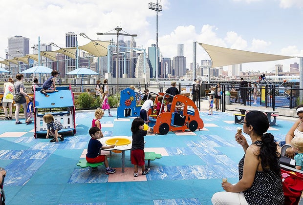 Pier 5 features two play areas for children of all ages: There's a gated toddler-friendly play area with an assortment of pretend-play structures to interact with (the little red car is popular), and another one nearby with climbing structures for older kids. My daughter could literally spend the entire day here. Plus, if you're craving salted crack caramel ice cream, Ample Hills Creamery is nearby.