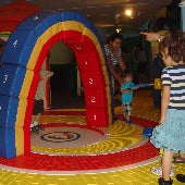 In another section you can follow the Yellow Brick Road with Dorothy’s friends and end up at the Wicked Witch’s Castle. Here you'll find physical aspects mixed in with movie trivia and educational games. Are you brave enough to crawl through a dark tunnel with the Cowardly Lion? Can you build a rainbow out of giant soft blocks? At the castle there is a big climbing wall and slide. Or you can try to find apples on the ground under those big talking fruit trees.
