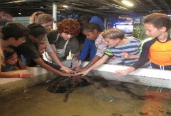 Petting the sharks at Santa Monica Pier Aquarium