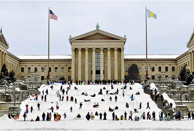 Museum sledding is a Philly tradition. Just beware of the bumps. Photo courtesy of the Philadelphia Museum of Art