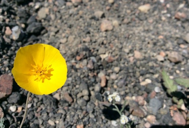 What happens in Death Valley after an El Niño winter is unquestionably beautiful, but it's subtle. Enormous expanses of rock and dust somehow host sprigs of life, and thin golden flowers lean into the wind. From one direction, they are all but invisible. From another, they are delicate miracles, fluttering in the dusty breeze.