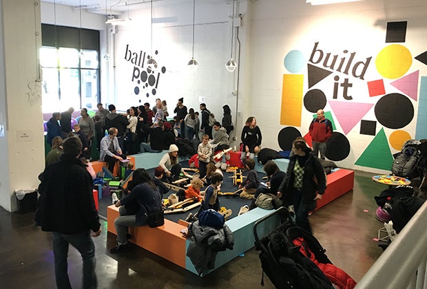 ARTech: Adventures in Art + Technology has transformed a vacant, 8,000-square-foot storefront on West 14th Street into an inspiring center for explorative play. Upon check-in, visitors can take in the entire space, consisting of a large, open first floor and mezzanine. Stations set up throughout the space each have a dedicated focus: exploring velocity, building and creating, GIF-making, the Star Lab pop-up planetarium, free play in the ball pool, and more. A Post-it wall and the Kids Art Mirror offer interactive art for all ages.