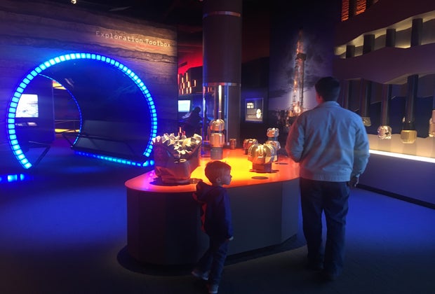 From the moment you step off the elevators onto the fourth floor, you are immersed in the world of oil, gas, and energy. The doors open to an offshore drilling rig in action, and from there it's a whirlwind adventure into the exploration of energy. My husband has spent most of his career life in oil and gas, and was completely enraptured with the exhibit right from the start, excitedly pointing out the different drilling machinery that his company deals with day in and day out. Being able to tangibly tell our son what he did for a living was something he really enjoyed and having not only pictures but also equipment that our son could touch and control made it much more understandable.