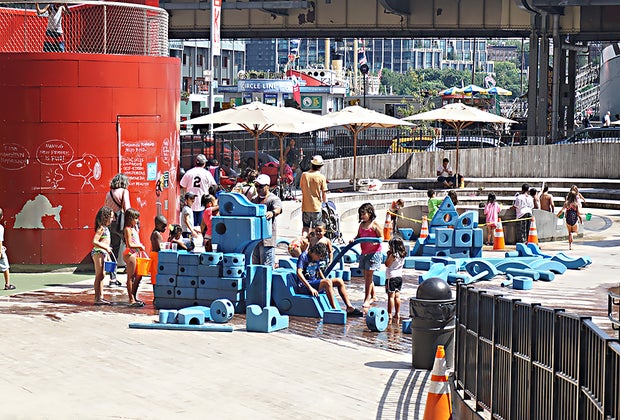 With sand, water, and its trademark blue blocks, kids can build their physical and mental strengths at Imagination Playground.