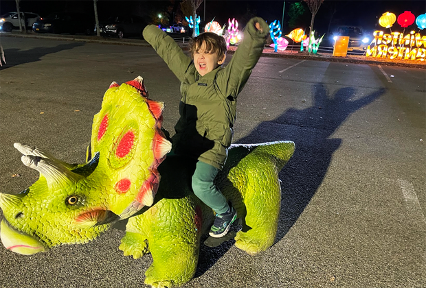 Saddle up and ride the dinosaurs at the end of the drive-thru experience.