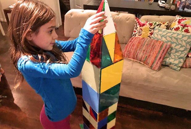 Have a Magna-Tiles building challenge. Photo by Sara Marentette