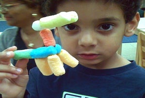 I like to help out in my son's Pre-K classroom when I can. This morning some of the kids were doing a really cute little craft project that I had never seen before. Apparently if you take those potato starch packing peanuts and wet them, they dissolve just enough that they can stick together. So simple!