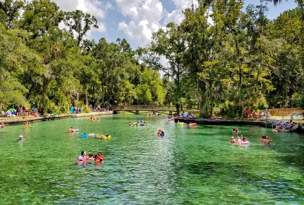 Known as Florida’s natural "lazy river," this wildly popular, free-flowing freshwater spring offers crystal clear water that is 68 degrees all year. Visitors can rent tubes at several places outside the park, or bring their own to travel downstream. There is a large swimming area at the park as well. Full-service concessions are available along with picnic pavilions and an impressive playground. Kayak, canoe, and paddleboard rentals are also available.