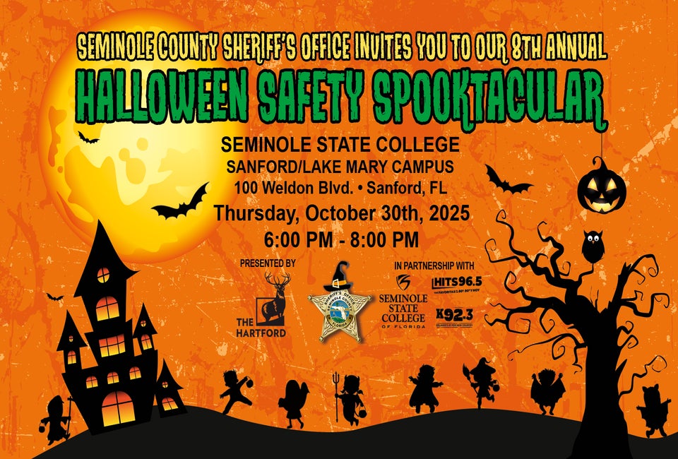 The Seminole County Sheriff’s Office is hosting its annual Halloween Safety Spooktacular. Gather the family and come dressed in your favorite costumes for FREE Trunk-or-Treating and snow cones served up by the Snow Patrol. Various community partners will also join in this family-friendly event.