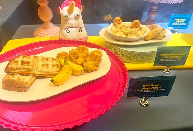 For dessert, guests can’t miss the Bake My Day whimsical pink bakery and retail shop topped with a giant pink cupcake. Bake My Day offers sweet treats, including cupcakes, macarons, cakesicles, and more. To cool off on a hot day, visit Freeze Ray Pops next door with frozen treats in fun flavors like Gru Nutella and Minion Blue Banana. Guests can pop on over to Pop-A-Nana, a popcorn stand offering special banana-flavored popcorn and keepsake popcorn buckets.