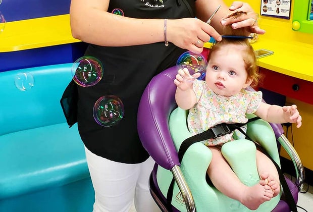Strap your little one into a baby seat and have a sibling or parent blow bubbles to provide a distraction from the cutting! Photo courtesy of Snip-Its