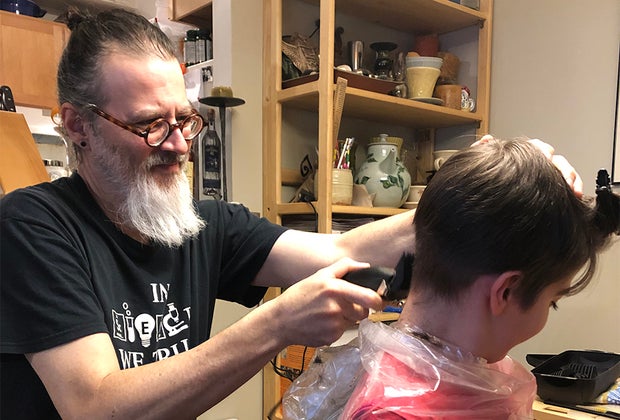So, take a step back from your "let it grow" philosophy, follow these pro-backed haircut tutorials, and dip your toes into the world of home haircuts. For more helpful advice, plus boredom busters to help you survive the coronavirus with kids, be sure to visit our Stay-at-Home Guide.
