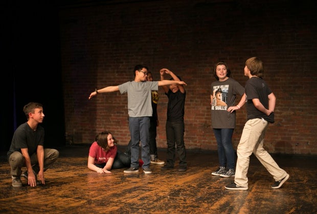 Students in grades 6-8 have fun in a Beginner Short Form class, which is similar to the style seen in Whose Line is it Anyway? Photo credit Erin Pitts for PHIT